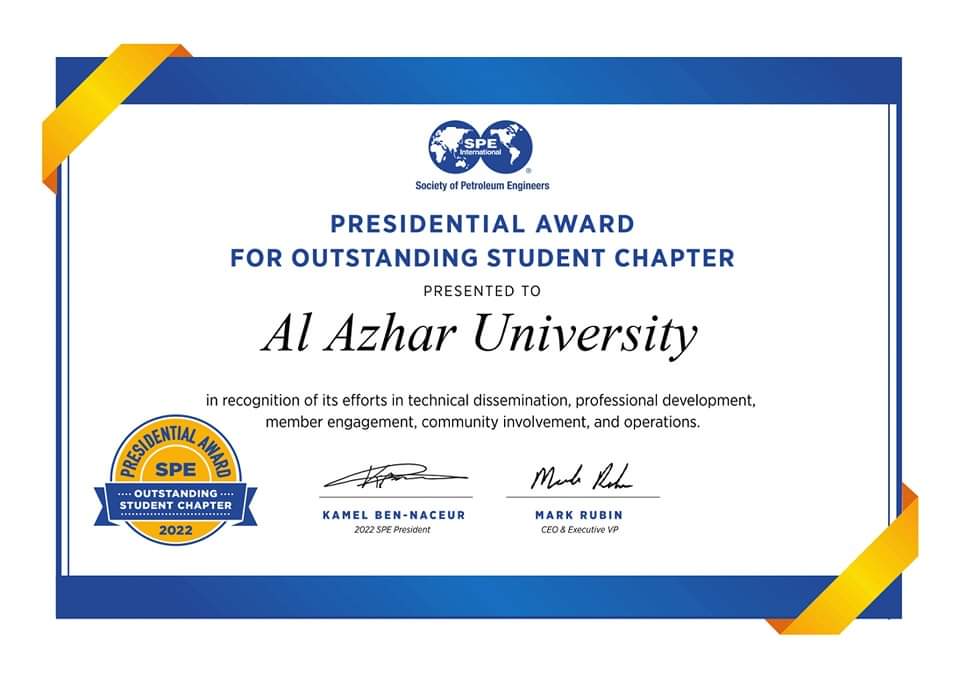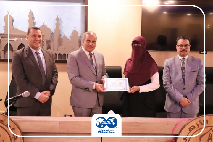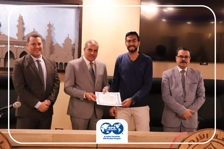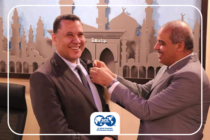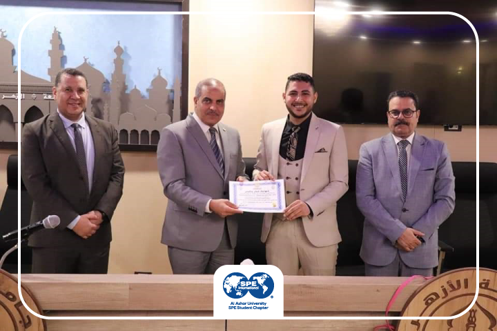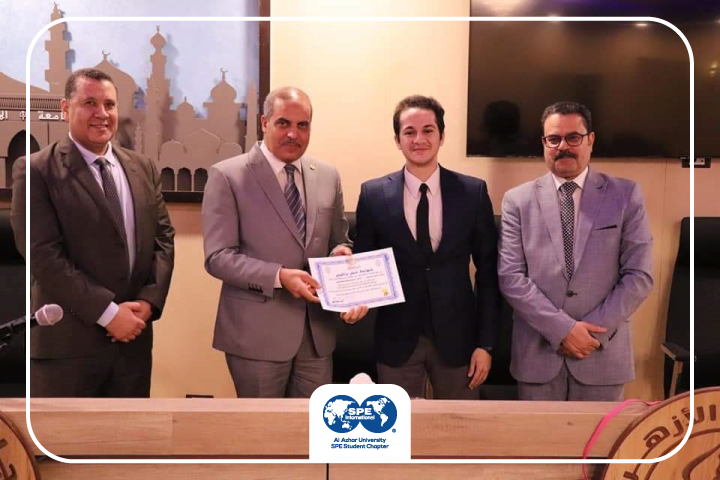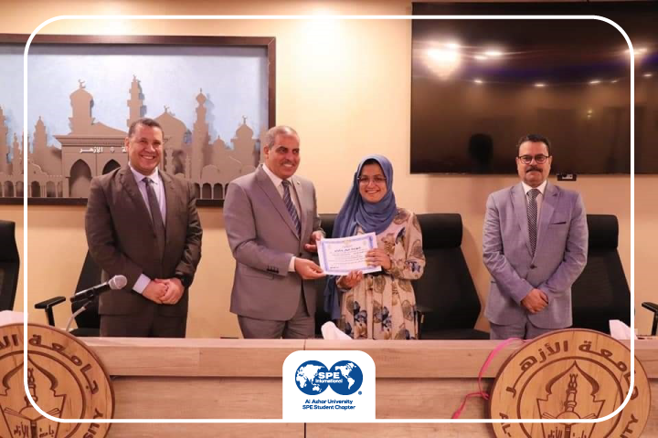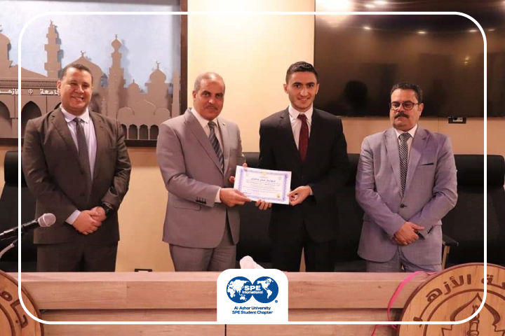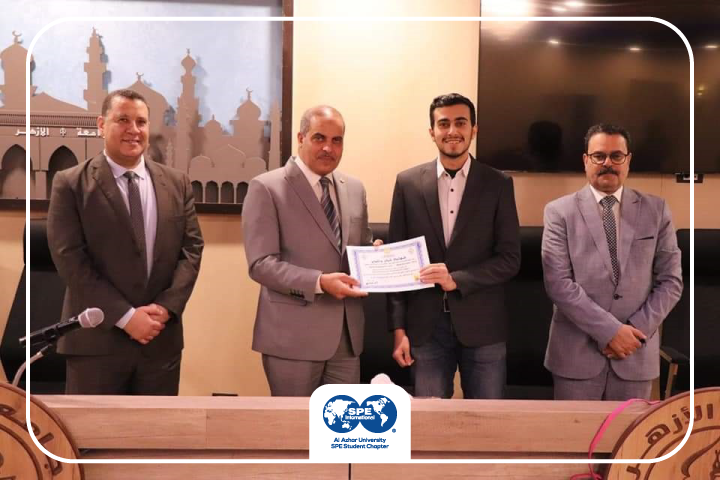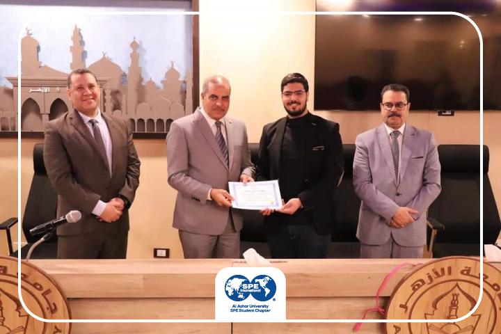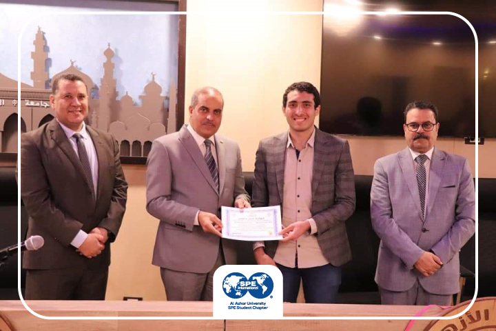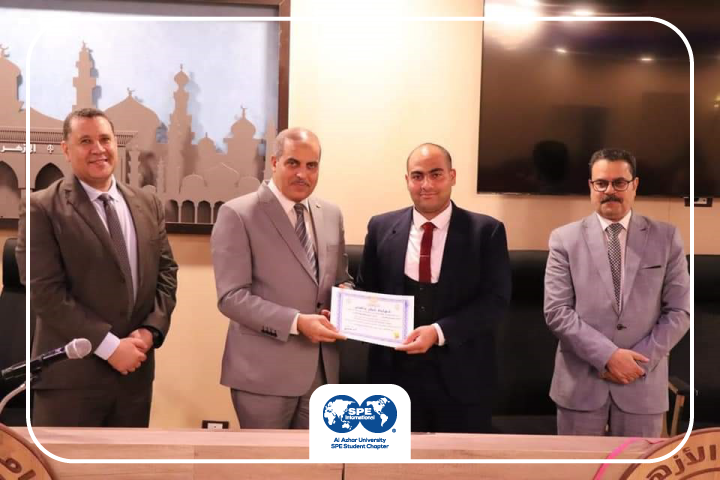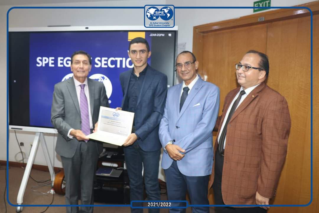 President of SPE international 2022_2023 and engineer Ashraf Abdul-Jawad has Dr. Medhat Kamal Chairman of SPE Egypt honored SPE Al-Azhar Team due to their efforts and we got the outstanding award.