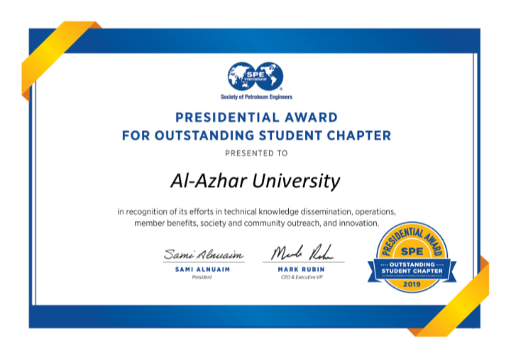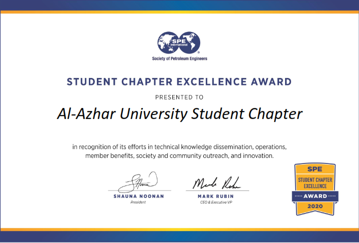 The 1st student chapter of Society of Petroleum Engineers at Al-Azhar University (SPEAUSC) that was founded in June, 2005 by students at the Petroleum Engineering Department.